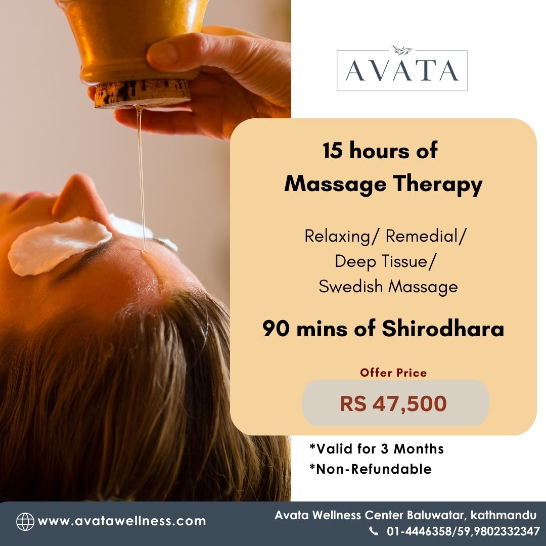 15 hours of massage therapy + 90 min of Shirodhara